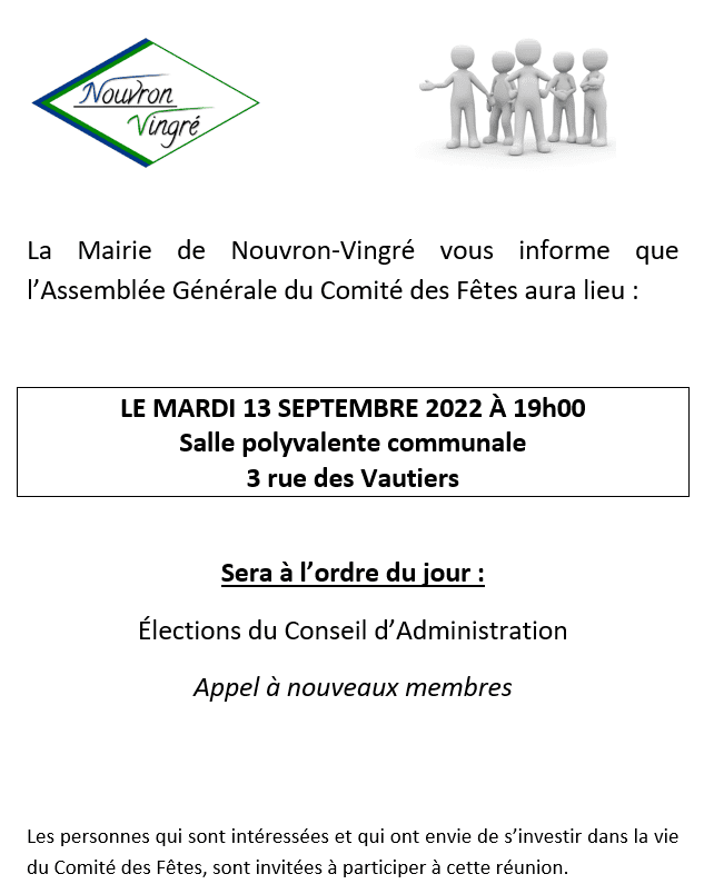 » Mairie » Publications » Newsletter » ◼️ ASSEMBLÉE GÉNÉRALE DU COMITÉ DES FÊTES 🙋