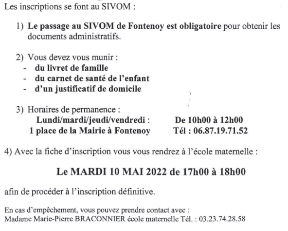» Actualités » ◼️ INSCRIPTIONS : ÉCOLE MATERNELLE DE FONTENOY 👧