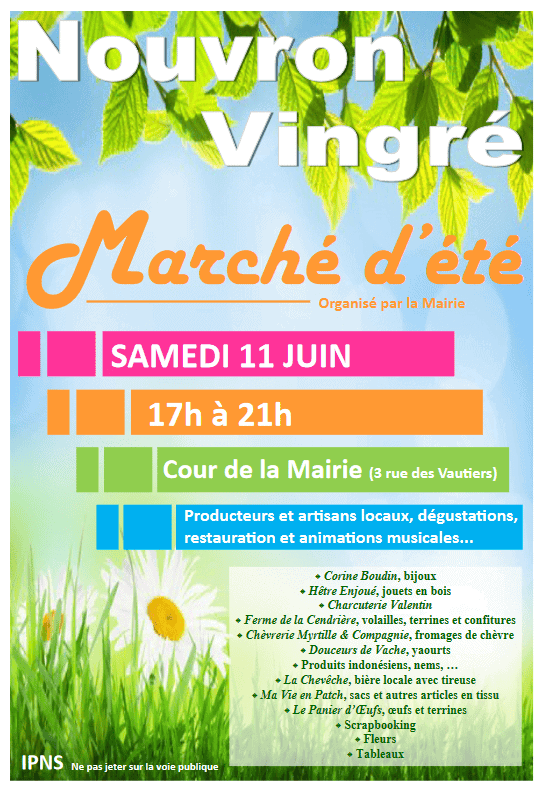 » Animations et fêtes » ◾️ LE MARCHÉ D’ÉTÉ DE NOUVRON-VINGRÉ DU 11/06/2022 ☀️