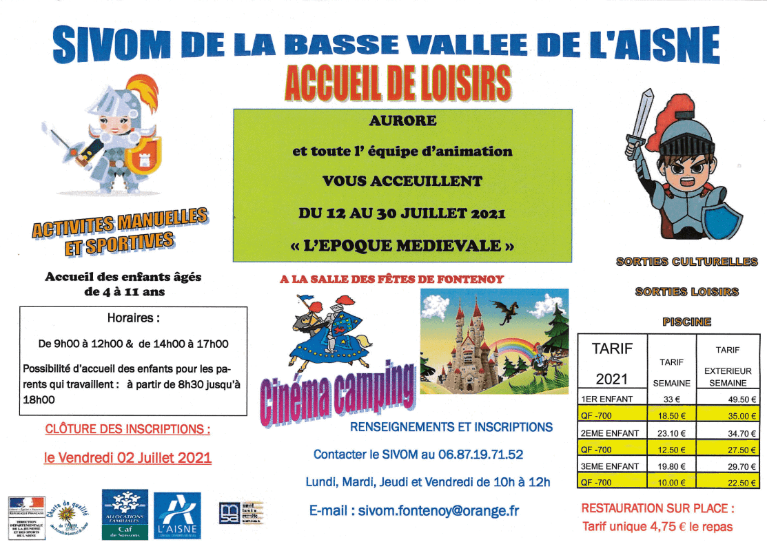 » Mairie » Publications » Newsletter » ◼️ SIVOM : ACCUEIL DE LOISIRS DU 12 AU 30 JUILLET 2021 👱♂️