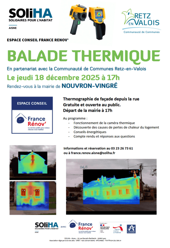 ➡️ L’Espace Conseil France Rénov’ et la Communauté de Communes Retz-en-Valois vous proposent une balade thermique à Nouvron-Vingré :