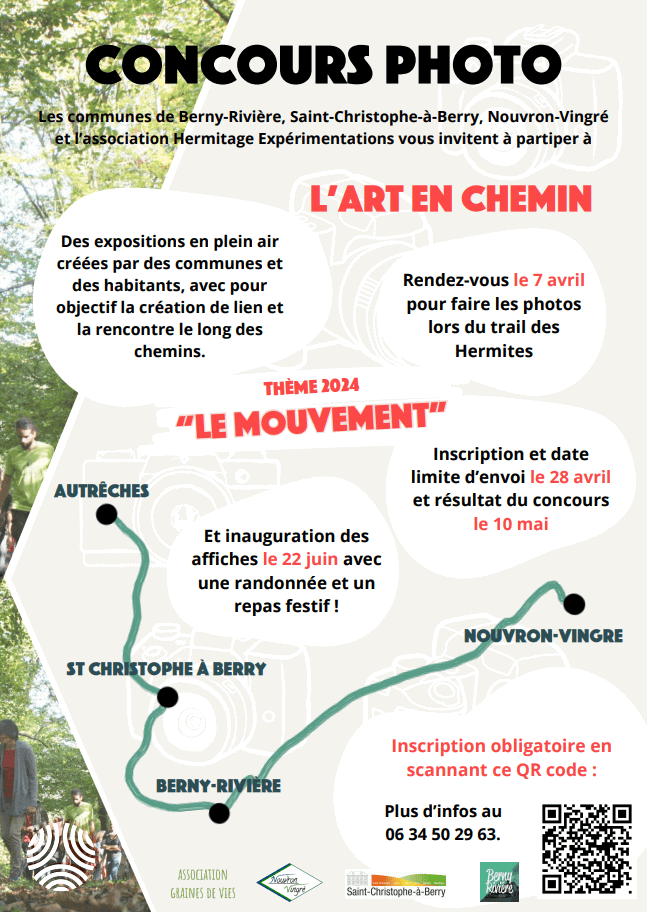 ➡️ Les communes de Berny-Rivière, Saint-Christophe-à-Berry, Nouvron-Vingré et l’association « Hermitage Expérimentations » d’Autrêches vous invitent à participer à un concours photo : « l’Art en chemin ».