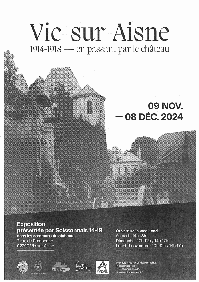 ➡️ L’Association Soissonnais 14-18 propose une exposition « Vic-sur-Aisne 1914-1918, en passant par le château« .