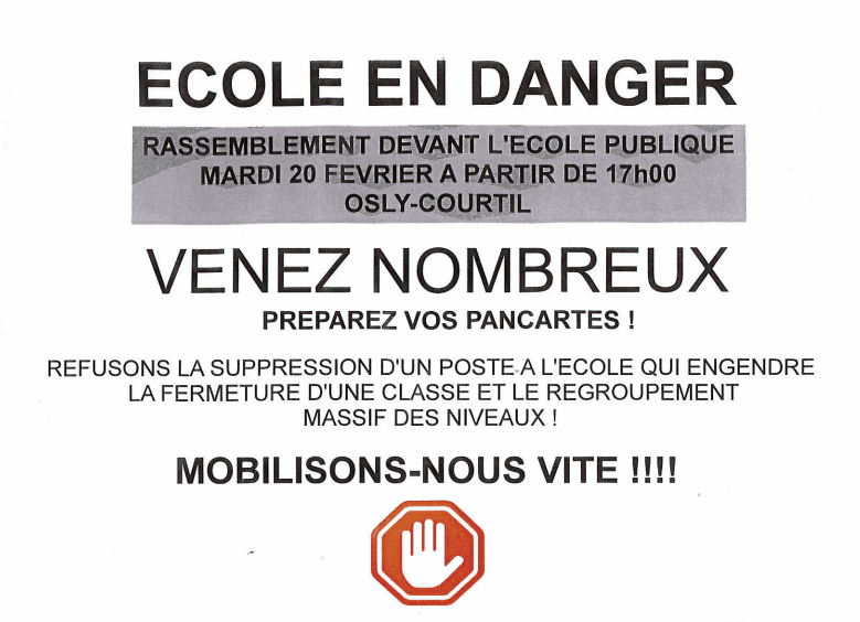 » Mairie » Publications » Newsletter » ◾️ FERMETURE DE CLASSE – RASSEMBLEMENT LE 20/02/2024 👩🏫