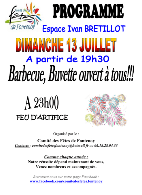 ➡️ Découvrez vite le programme des festivités du 13 et 14 juillet à Fontenoy.