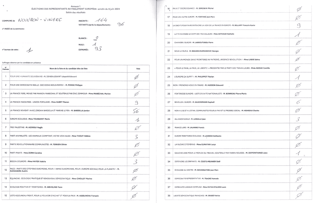 » Actualités » ◾️ RÉSULTATS DES ÉLECTIONS EUROPÉENNES À NOUVRON-VINGRÉ ✉️
