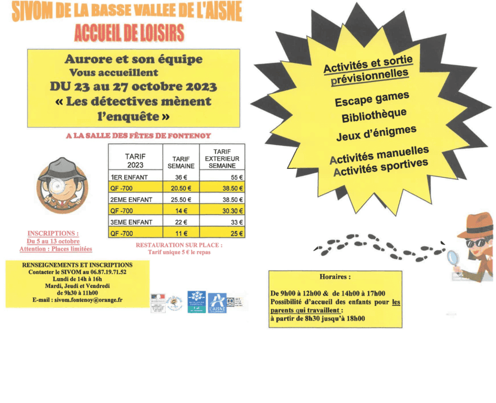 » Actualités » ◾️ SIVOM – ACCUEIL DE LOISIRS DU 23 AU 27 OCTOBRE 2023 🕵️