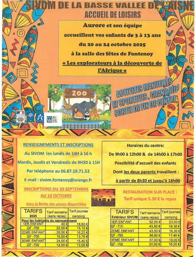 ➡️ Aurore et son équipe accueilleront les enfants (de 3 à 13 ans) durant les prochaines vacances scolaires sur le thème « Les explorateurs à la découverte de l’Afrique ».