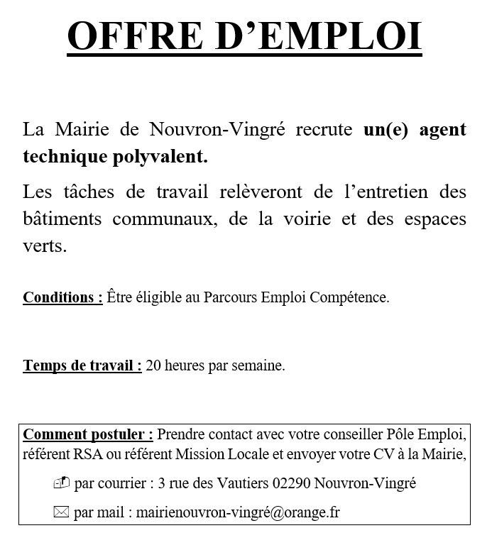 » Actualités » ◾️LA MAIRIE RECHERCHE UN(E) AGENT TECHNIQUE ⚠️